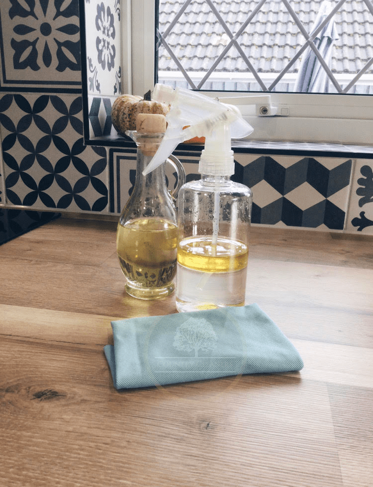 Olive oil is neither antibacterial nor disinfectant but it is a great cleaning tool. It nourishes surfaces and protects them in the same way it moisturises our cracked heels, it’s great for loosening grease, grime, rust and stains.